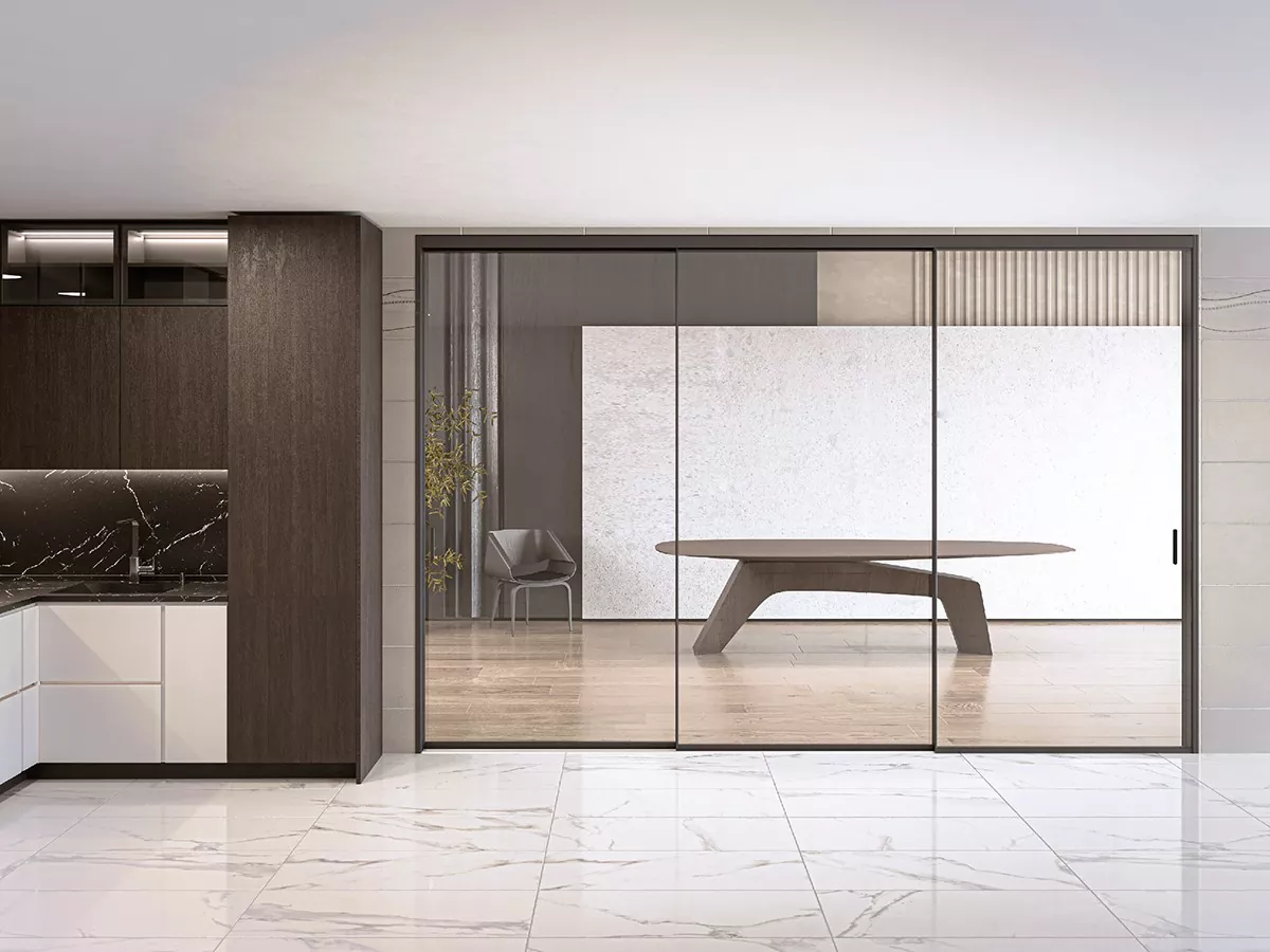 1. Diseinu sinplea: beirazko ate irristagarri oso sinpleak ezkutuko edo erdi ezkutuko pista sistema erabiltzen du atea txukunagoa izan dadin. Diseinu honek material modernoak erabiltzen ditu normalean, hala nola beira eta aluminiozko aleazioa, gelako argiztapena hobetu eta jendeari efektu bisual irekia eman diezaiokeenak.